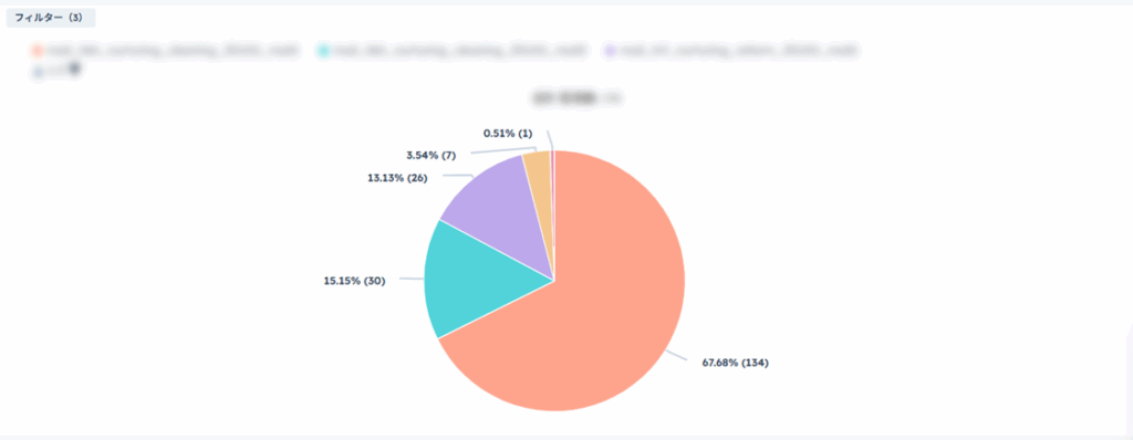 以下のような円グラフでは、カテゴリ別内訳やセグメント別の構成比など、データの占める割合を可視化する際に活用することができます。